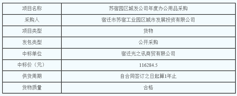 蘇宿園區(qū)城發(fā)公司年度辦公用品采購(gòu)評(píng)標(biāo)結(jié)果公示