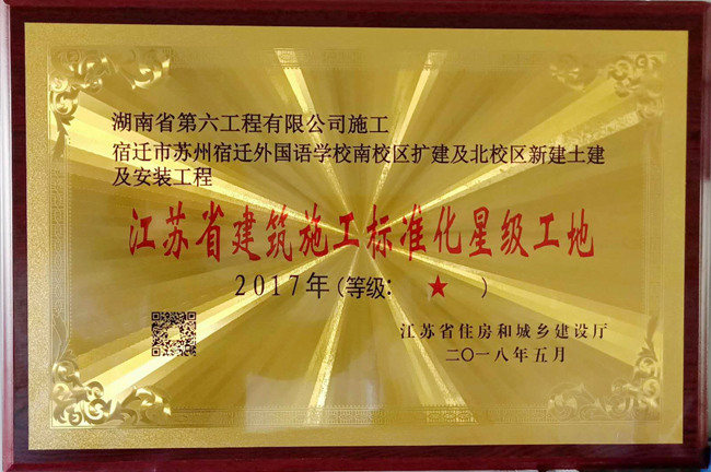 近日,江蘇省住建廳公布的2017年度江蘇省建筑施工標準化星級工地項目名單,宿遷市蘇州外國語學(xué)校南校區(qū)擴建及北校區(qū)新建土建及安裝工程項目榮耀上榜。
