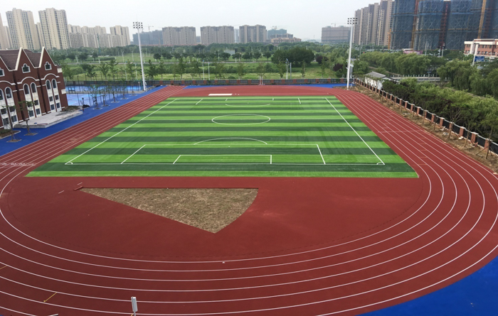 本次體育場地工程主要包括300米塑膠跑道、1個燈光足球場、3片籃球場和3片排球場。 2018年11月,塑膠跑道國家強(qiáng)制性標(biāo)準(zhǔn)《中小學(xué)合成材料面層運動場地》GB 36246-2018正式實施,本體育場地項目從前期的規(guī)劃設(shè)計,到制定參數(shù),到施工過程中的選材用料和現(xiàn)場施工工藝的把控,嚴(yán)格按新國標(biāo)實施,同時在校方見證下按要求對固體顆粒、膠水、PU等材料現(xiàn)場取樣并送至上海專業(yè)檢測機(jī)構(gòu)進(jìn)行復(fù)測,各項專業(yè)檢測報告均合格。在施工過程中狠抓質(zhì)量、盡職盡責(zé),確保環(huán)保、安全、精品,目前項目基本完工,取得了較好的觀感效果,同時也將為學(xué)校體育教學(xué)和體育活動提供了良好的場地條件。