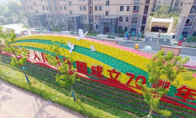 為迎接新中國(guó)成立70周年重大節(jié)日活動(dòng),切實(shí)營(yíng)造熱烈慶祝新中國(guó)成立70周年,開(kāi)發(fā)公司在氛圍實(shí)施中通過(guò)景觀協(xié)調(diào)、做到點(diǎn)線面的統(tǒng)一結(jié)合,相互銜接、相得益彰的整體效果,提升園區(qū)的城市內(nèi)涵品位,展示園區(qū)迎接建國(guó)70周年。