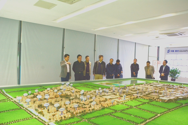 在園區(qū)管委會(huì)一樓規(guī)劃展廳,劉建華副總裁向楊民副總經(jīng)理一行詳細(xì)介紹了園區(qū)先進(jìn)的規(guī)劃理念和未來(lái)發(fā)展藍(lán)圖。