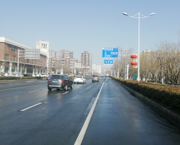 由于區(qū)內(nèi)道路交通標(biāo)線時(shí)間久和原料自身損耗原因,現(xiàn)有交通標(biāo)線不明顯、缺損較大。為提高商住區(qū)形象,園區(qū)對商住區(qū)內(nèi)所有道路交通標(biāo)線、斑馬線和網(wǎng)格線等標(biāo)線重新進(jìn)行施劃,同時(shí)對通達(dá)大道重點(diǎn)路口進(jìn)行節(jié)點(diǎn)改造。