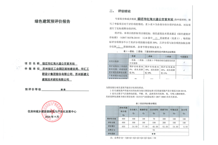由開發(fā)公司代建的紅海大道公交首末站項目順利通過了住房和城鄉(xiāng)建設(shè)部科技與產(chǎn)業(yè)發(fā)展中心組織的第十四批綠色建筑預評價,并獲得預評價報告。該項目是按照最新《綠色建筑評價標準》(GB/T 50378-2019,以下簡稱“新國標”)進行評價的二星級綠色建筑。