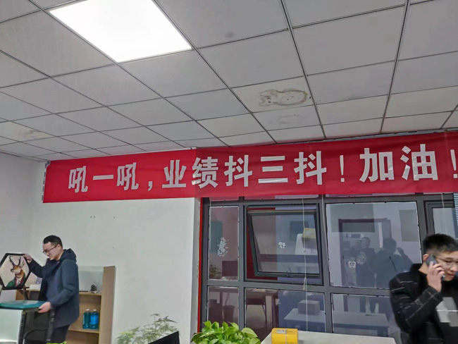 走進騰輝家具,一條催人奮進的條幅“將來的你一定會感激現(xiàn)在拼搏的你”映入眼簾,四通科技的“不吃飯,不睡覺,敲著鍵盤數(shù)鈔票”條幅簡單明了催人沖業(yè)績,還有的拉出 “吼一吼,業(yè)績抖三抖!” 這些熱血沸騰的條幅巧妙打造“備戰(zhàn)”主題,為“雙11”預售烘托濃厚氛圍。
