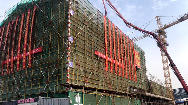 項(xiàng)目于2022年12月8日開工建設(shè),12月25日完成樁基施工。為搶回疫情對工期的影響,城發(fā)公司組織人員在春節(jié)假期后第2天就全面復(fù)工,同時(shí)主體結(jié)構(gòu)始終保持7天一層的施工進(jìn)度,從而封頂日期比原計(jì)劃提前15天。