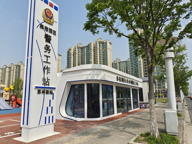 該警務(wù)工作站位于園區(qū)治安復(fù)雜部位、人車流密集區(qū)域的玄武湖路臨時健身公園東側(cè),建筑面積70多平方米。警務(wù)工作站外觀簡潔、標識明顯,內(nèi)部設(shè)置接處警區(qū)、調(diào)解中心、志愿者服務(wù)區(qū)和休息室。警務(wù)工作服務(wù)站啟用后,既是警方工作平臺,也是便民服務(wù)網(wǎng)點,將實現(xiàn)屯警街面、快速處警等一站式功能,著力筑牢社會治安打防管控第一道關(guān)口,為社會治安穩(wěn)定有序提供了堅實保障。