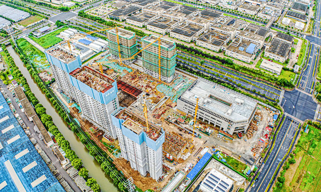 7月26日,蘇宿工業(yè)園區(qū)青年公寓項目施工現(xiàn)場,工人正在加緊施工。