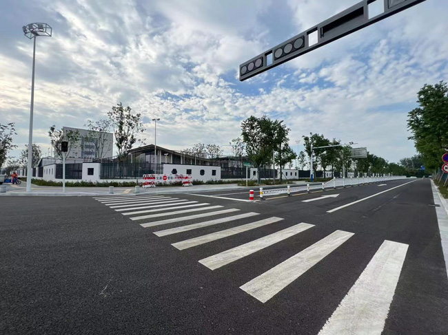 本次工程累計安裝隔離護欄1236米,警示柱12套,震蕩標(biāo)線713平米,夜間自發(fā)光三角警示牌19套,停車場指示牌2套,可拆卸防撞柱10套,臨時封閉移動護欄100m。