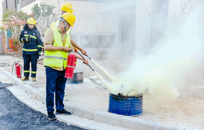 演練結(jié)束,園區(qū)消防救援大隊(duì)對火災(zāi)應(yīng)急疏散過程中存在的問題進(jìn)行一一點(diǎn)評,演示了滅火器的使用方法,為現(xiàn)場工人科普了消防知識,邀請現(xiàn)場人員參與滅火體驗(yàn)。