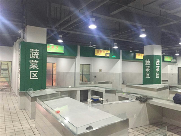 該工程位于明日鄰里中心地下一層,建筑面積700平米,工程造價60萬元。歷經(jīng)兩個月施工建設,菜場內設鹵菜、蔬菜、水果、生肉、水產(chǎn)、面加工等各類攤位共計20個,菜場開放運營后,進一步滿足周邊居民采購瓜果、蔬菜等生活必需品的需求。