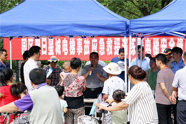 8月6日上午,園區(qū)市場監(jiān)管局、社工委在明日星城小區(qū)組織電梯事故應(yīng)急救援演練暨電梯安全使用宣傳進(jìn)社區(qū)活動。